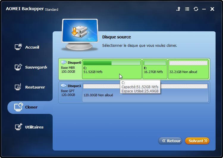 - Cloner l'intégralité du disque dur ou uniquement les partitions sélectionnées selon vos besoins.