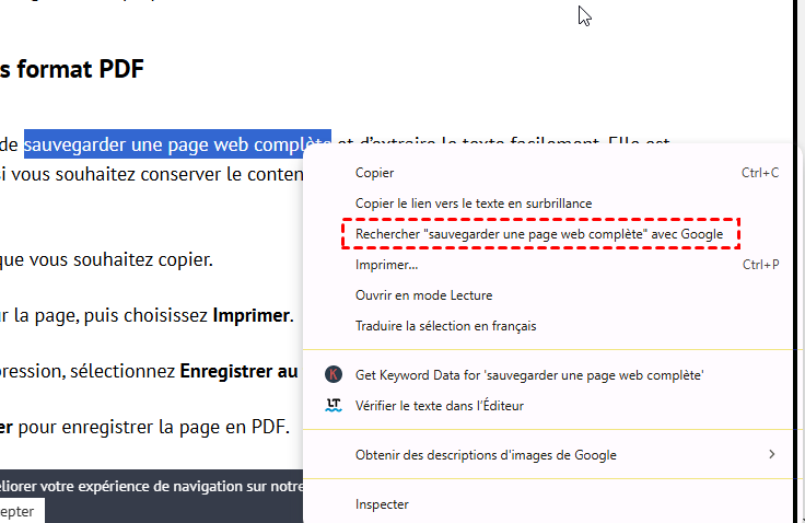 Cette méthode permet de sauvegarder une page web complète et d’extraire le texte facilement. Elle est particulièrement utile si vous souhaitez conserver le contenu pour une consultation hors ligne ou pour un usage personnel.