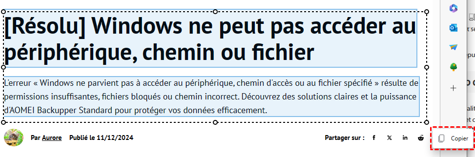 Copier un texte sur un site protégé peut sembler compliqué, mais avec les bonnes méthodes, c’est tout à fait faisable. Que ce soit en utilisant une extension, le code source ou des outils comme le Web Select de Microsoft Edge, vous trouverez une solution adaptée à votre besoin. Et pour protéger vos propres fichiers, pensez à AOMEI Backupper Standard, un logiciel de sauvegarde fiable et facile à utiliser. Ainsi, vos données seront toujours en sécurité !