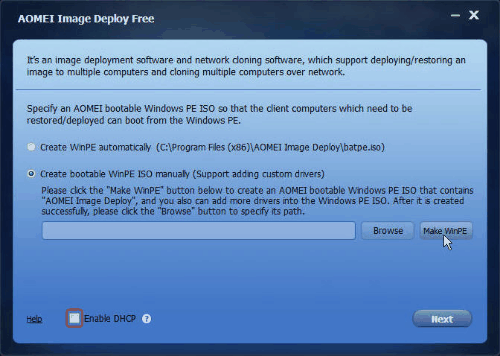 Conseils : Pour déployer l'image sur le réseau, il doit y avoir un serveur DHCP dans votre réseau local. Sinon, cochez la case avant « Activer DHCP ».