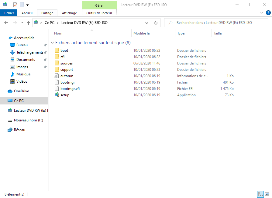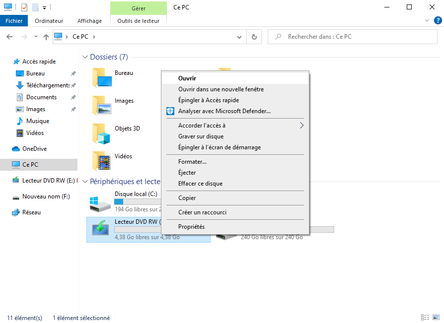 1. D’abord, insérez le CD dans le lecteur, et connectez votre clé USB. Ouvrez votre Poste de travail/Ce PC.