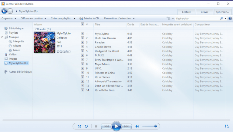1. Insérez votre CD musique et exécutez Windows Media Player dans votre ordinateur.