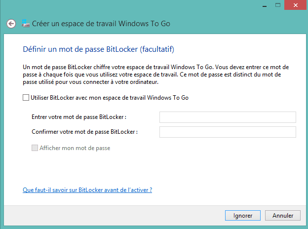 5. (facultatif) Si vous souhaitez protéger votre clé USB avec BitLocker, définissez un mot de passe. Sinon, vous pouvez ignorer cette étape.
