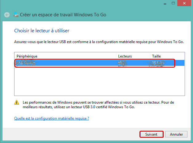 3. Sélectionnez votre clé USB comme cible pour Windows To Go et suivez les instructions.