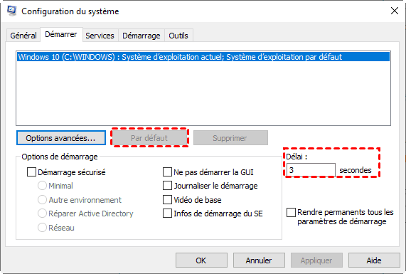 Méthode 1. Changer le système d'exploitation par défaut dans Configuration du système