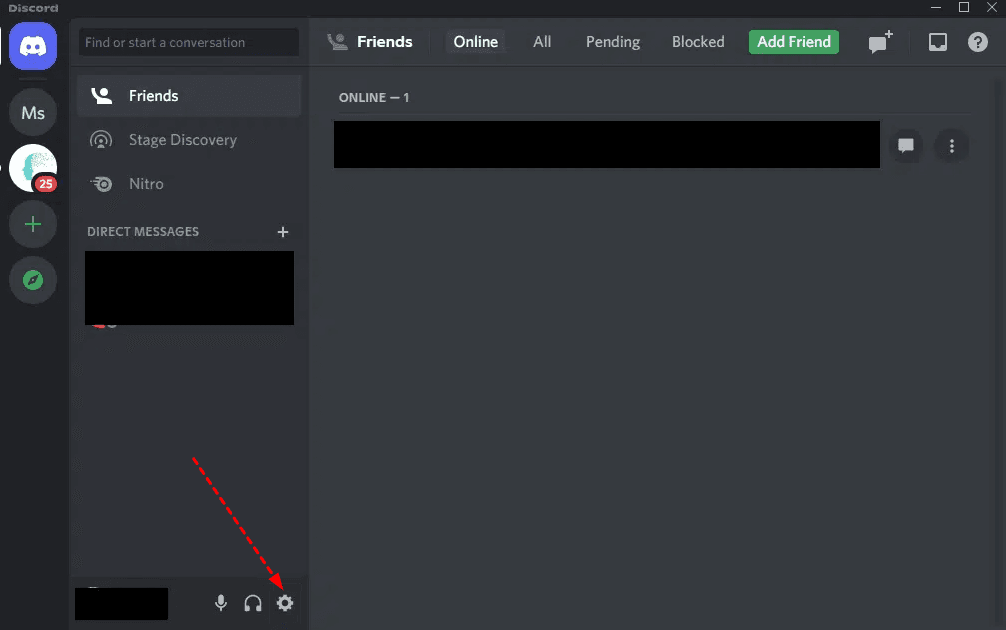 Étape 1. Ouvrez Discord et cliquez sur l'icône d'engrenage dans le coin inférieur gauche pour accéder aux paramètres.