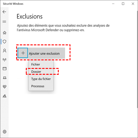 Étape 5. Cliquez sur Ajouter une exclusion et sélectionnez Dossier, puis ajoutez le dossier d'installation de Discord et enregistrez-le.