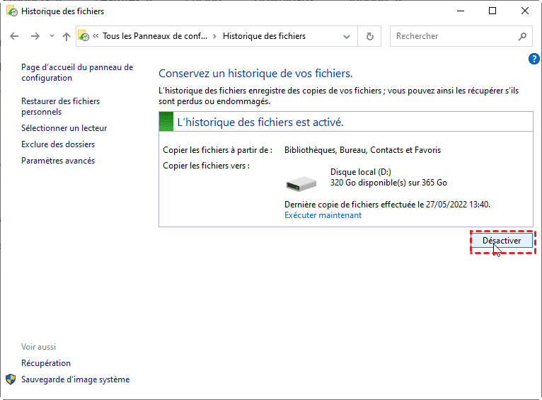 L'historique des fichiers est l'un des utilitaires de sauvegarde Windows 10 pour vous aider à sauvegarder les données et les fichiers du système d'exploitation à l'emplacement souhaité. Et vous pouvez simplement supprimer l'ancienne sauvegarde si vos dossiers de sauvegarde occupent trop d'espace disque.