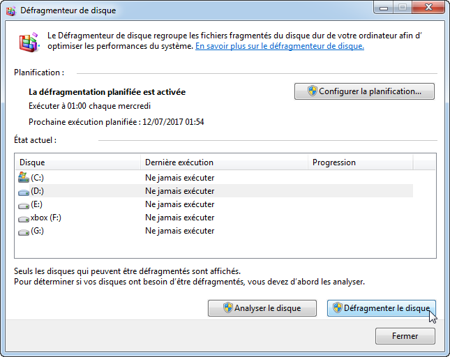 2. Sélectionnez le disque que vous souhaitez défragmenter et cliquez sur « Défragmenter le disque ».