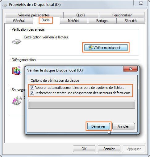 Solution 1 : Vérifier et réparer les secteurs défectueux