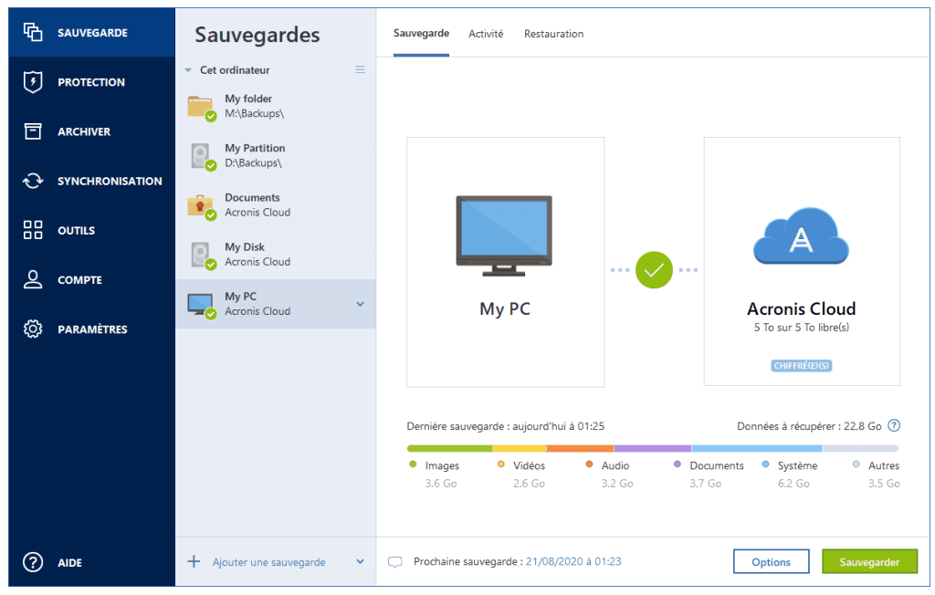 Acronis Cyber Protect Home Office (anciennement Acronis True Image) un logiciel de sauvegarde automatique payant (A partir de 49,99 €) qui vous offre une protection professionnelle des données. Le logiciel n'est pas disponible en version gratuite mais propose un essai gratuit.