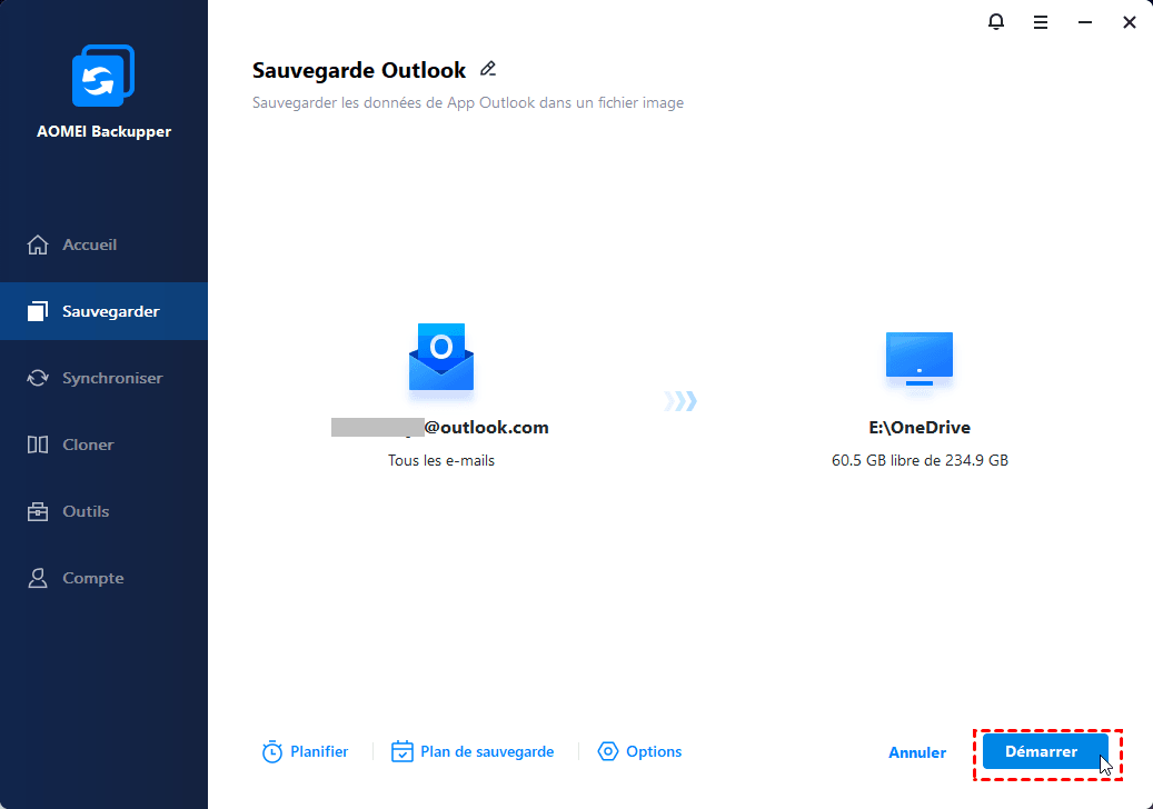 Si vous recherchez un logiciel de sauvegarde Outlook gratuit, après avoir lu cet article, vous ne serez pas déçu. Il dispose d'une période d'essai gratuite de trente jours pour vous permettre de prendre votre décision. Outre les données Outlook, AOMEI Backupper vous aide également à sauvegarder les mails dans Microsoft 365, Gmail, Yahoo, iCloud, Exchange. Il vous fournit également plusieurs types de sauvegarde et plusieurs destinations de sauvegarde. En dehors de cela, vous pouvez également l'utiliser pour chiffrer vos sauvegardes. Il agit comme un outil fiable pour sécuriser votre compte Outlook dans tous les aspects. Essayez-le maintenant !