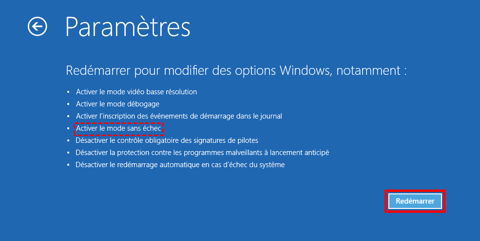 Solution 8. Démarrer l'ordinateur en mode sans échec