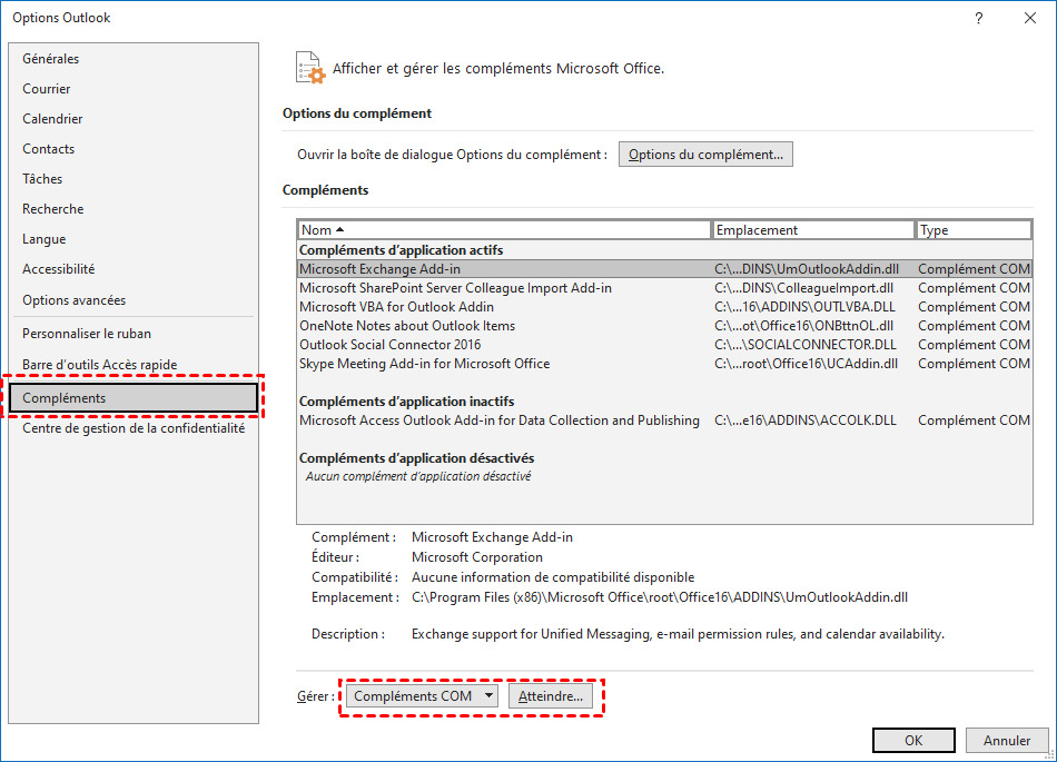 2. Dans la section Gérer, sélectionnez Compléments COM.