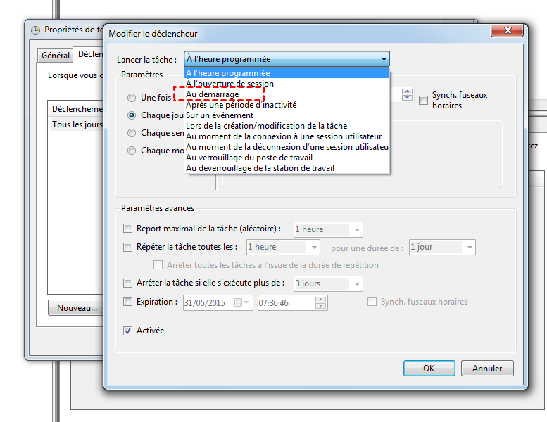 Planificateur de tâche : Fermer une session ou sauvegarder planifiée