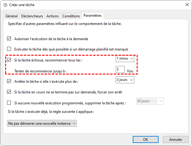 Étape 3. Configurez les autres paramètres avancés en fonction de vos besoins. Ensuite, cliquez sur OK pour enregistrer cette tâche.