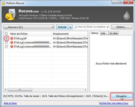 Étape 6. Dans cette fenêtre, cochez les fichiers perdus et cliquez sur Récupérer.