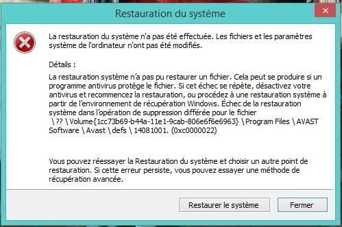 Pourquoi il est impossible de faire la restauration du système ?