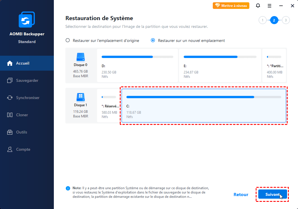 Restaurer l'image système (Windows 11/10/8.1/8/7) sur un disque plus petit peut être facilement réalisé avec le logiciel puissant d'AOMEI Backupper.