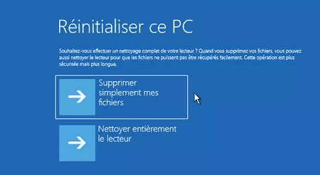 3. Cliquez sur « Supprimer simplement mes fichiers » ou « Nettoyer entièrement le lecteur ».