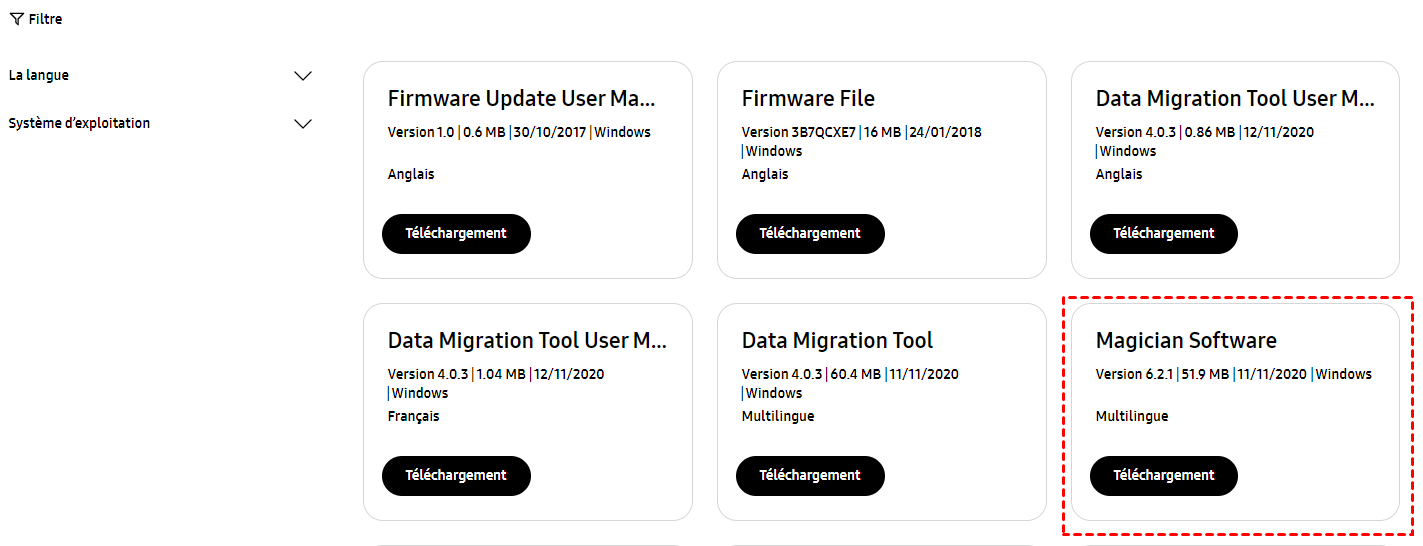 - L'ancienne version du logiciel Samsung Magician n'est pas compatible avec certains nouveaux SSD Samsung.