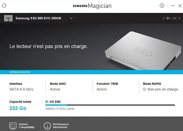 Problème : Samsung Magician le lecteur n'est pas pris en charge