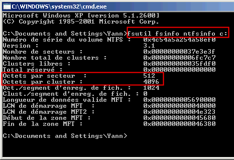Pour obtenir la taille de secteur physique et logique, vous pouvez exécuter la commande "fsutil fsinfo ntfsinfo" dans une invite de commandes avec élévation de privilèges. Si elle affiche "Octets par secteur: 512" et "Octets par cluster: 4096", il s'agit d'un disque de format avancé (4 Ko) avec une émulation de 512 octets. Si les deux lignes affichent 4096, c'est un disque natif de 4 Ko. Si elle affiche "Octets par secteur: non pris en charge", le disque dur ne prend pas en charge IOCTL_STORAGE_QUERY_PROPERTY.