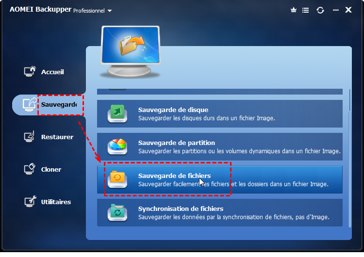 Pour une plus de simplicité et une meilleure sécurité des données, nous vous proposons un logiciel professionnel de sauvegarde - AOMEI Backupper Standard.