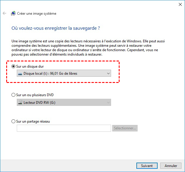 ★ Créer une image système : Sauvegarder l'intégralité du système d'exploitation, des applications, des paramètres et des données de votre ordinateur dans un seul fichier.