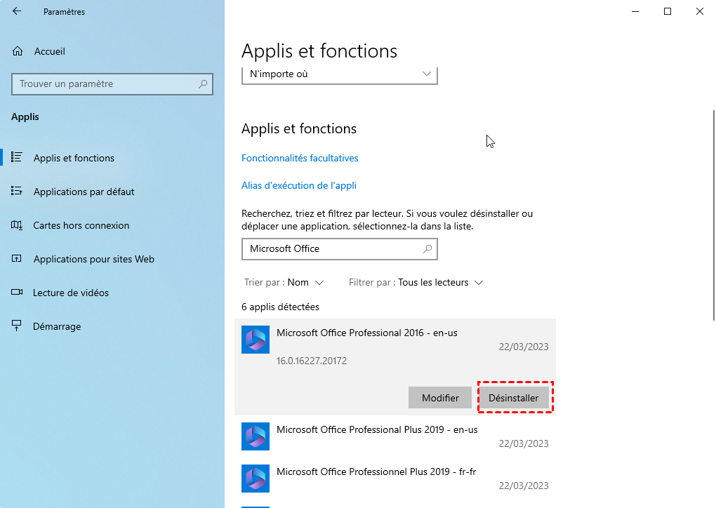 Étape 4. Sélectionnez les applications de bureau Microsoft Office et cliquez sur Désinstaller.
