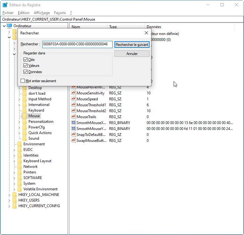 Étape 7. Appuyez sur F3 pour répéter la recherche jusqu'à ce qu'aucune autre clé de registre ne soit trouvée.