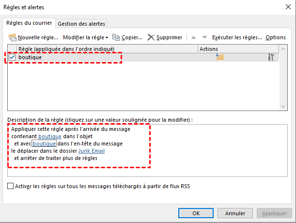Suivez ces étapes pour vérifier les règles de votre Outlook actuel et les modifier si les règles sont incorrectes.