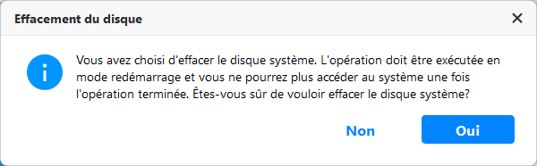 ★ Une fenêtre vous demandera que l'effacement du disque système s'exécutera en mode redémarrage. Si vous effacez le disque système, le programme créera lui-même l'environnement PE pour terminer le processus. Après l'effacement, vous ne pouvez plus utiliser le disque dur pour démarrer votre ordinateur. Cliquez sur OK pour confirmer.