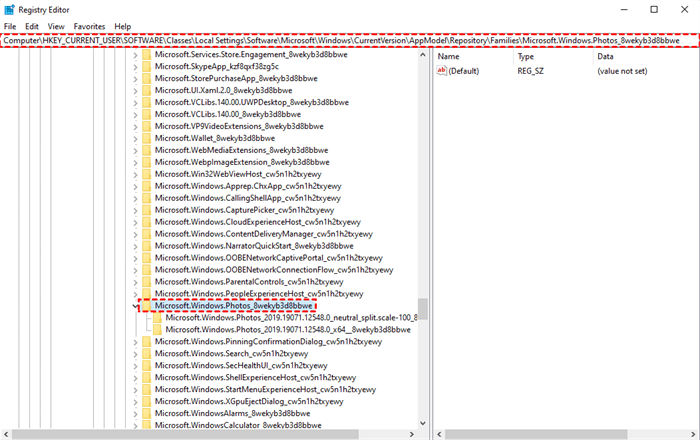 7. Ensuite, vous pouvez supprimer les anciennes entrées de version dans le projet Microsoft.Windows.Photos_8wekyb3d8bbwe à leur tour dans l'éditeur de registre, puis redémarrer l'ordinateur.
