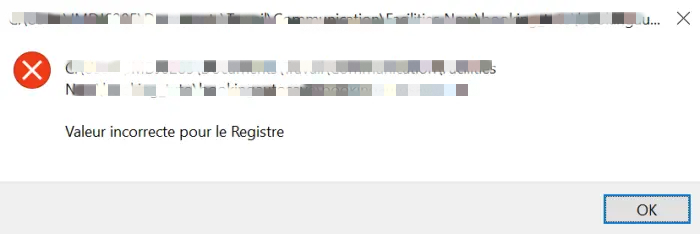 Cela peut interrompre le processus système et éventuellement entraîner l'erreur « Valeur incorrecte pour le Registre » lors de l'affichage des fichiers JPEG.