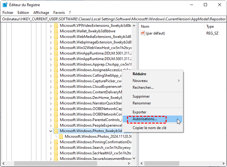 1. Cliquez avec le bouton droit sur le dossier Microsoft.Windows.Photos_8wekyb3d8bbwe et sélectionnez Autorisations.