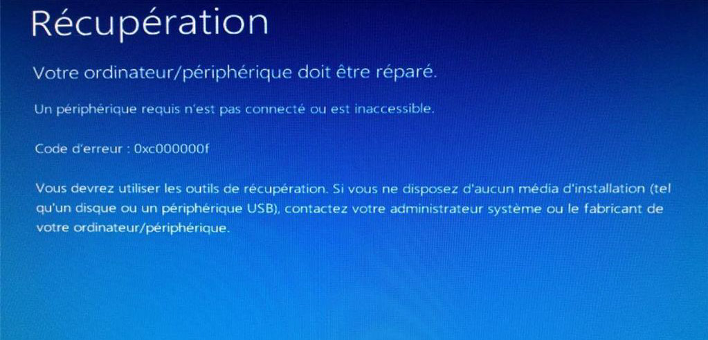 Le code d'erreur 0xc00000f est généralement signalée dans Windows 10 indiquant qu'un périphérique requis n'est pas connecté ou est inaccessible. Comment y remédier alors qu'aucune des solutions officiellement recommandées ne fonctionne ?