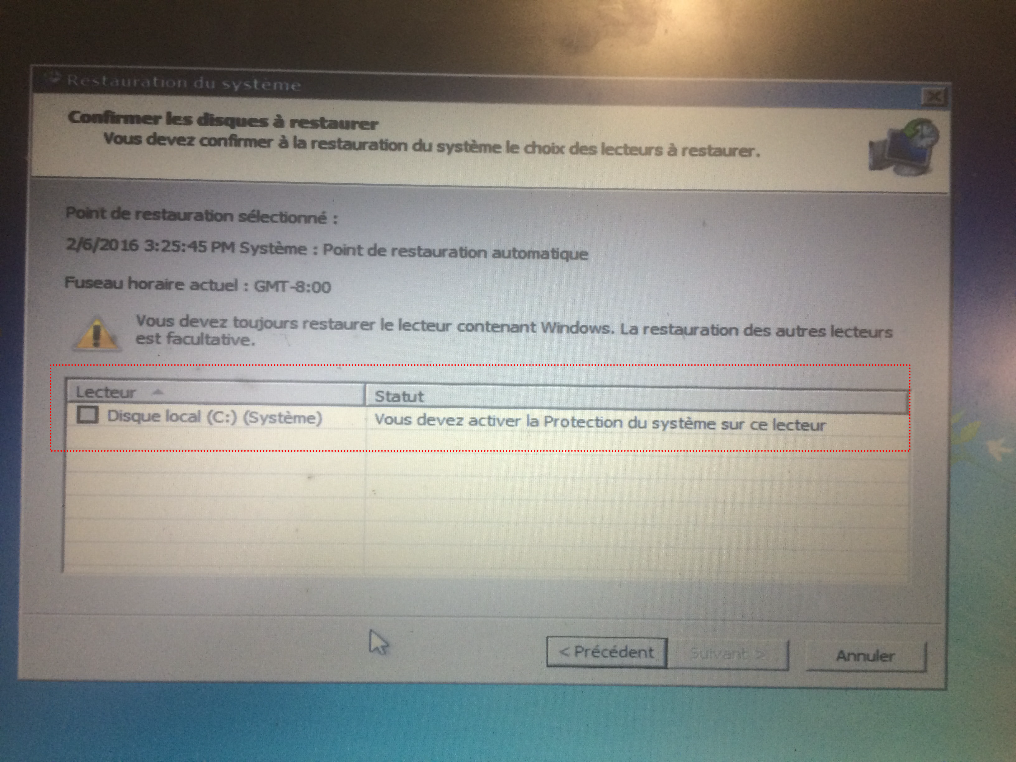 Le problème : Vous devez activer la Protection du système sur ce lecteur
