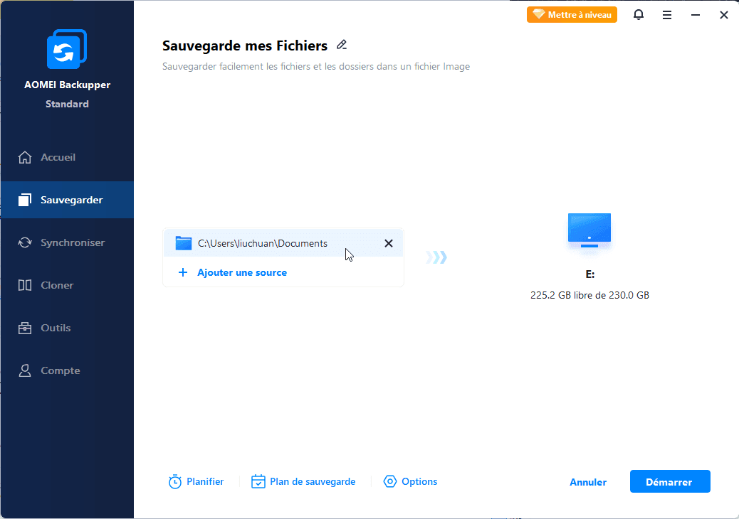 Voyons maintenant comment effectuer facilement une sauvegarde de fichiers avec AOMEI Backupper :