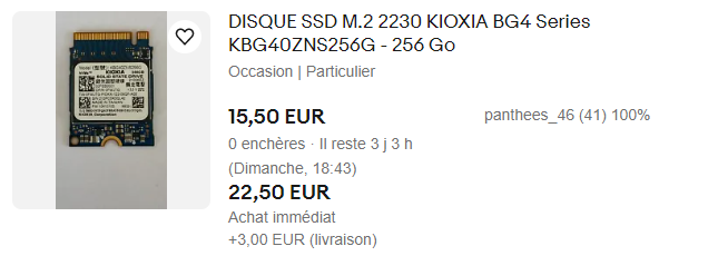- KBG40ZNS256G pour SSD Surface Pro X 256 Go. Le prix est d'environ 15,50 € maintenant.