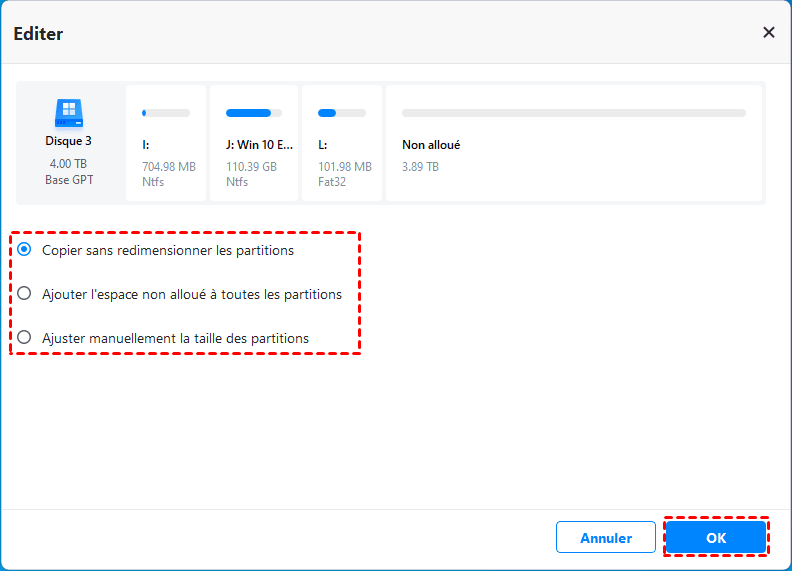 4. Sélectionnez le style de partition de disque MBR ou GPT et cliquez sur OK. Notez qu'il doit être identique à votre plus petit SSD.