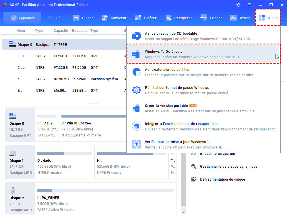 Pour rapidement créer un Windows 10/11 version portable, référez-vous aux étapes suivantes.