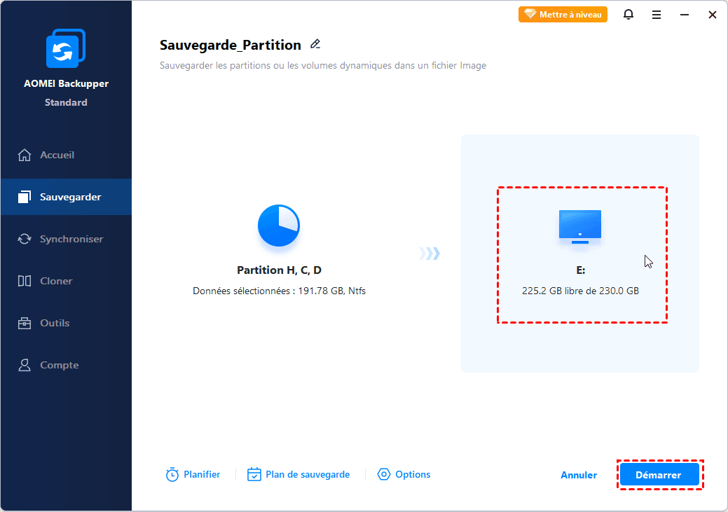 Étape 4 : Cliquez sur Démarrer la sauvegarde pour lancer le processus de sauvegarde. Vous pouvez configurer la sauvegarde automatique en cliquant sur Planifier et en choisissant un plan de sauvegarde adapté.