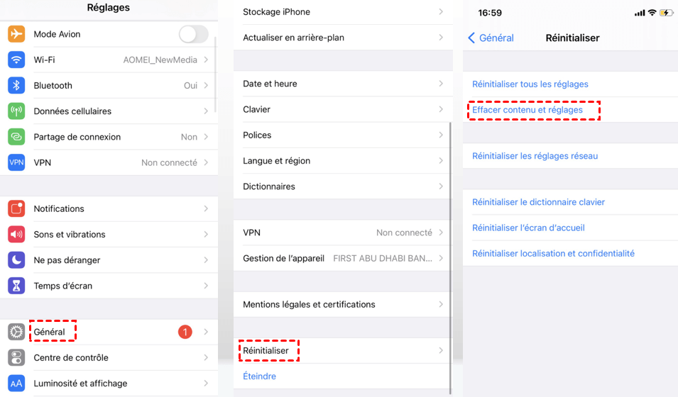 Étape 1. Allez dans les Réglages de votre iPhone > Général > Réinitialiser > Effacer contenu et réglages.