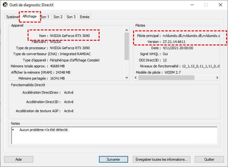 1. Appuyez sur Windows + R, tapez dxdiag et appuyez sur Entrée pour voir votre carte graphique.