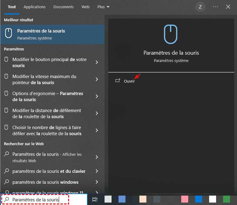 Étape 1. Tapez Paramètres de la souris dans la barre de recherche de Windows et cliquez sur Ouvrir.