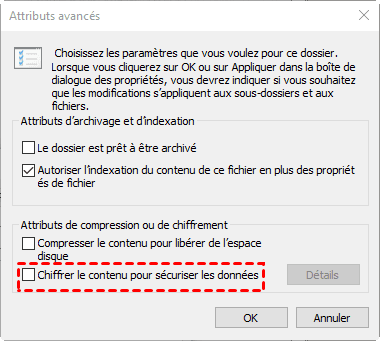 Étape 3. Ne cochez pas le bouton Chiffrer le contenu pour sécuriser les données. Cliquez sur le bouton OK.