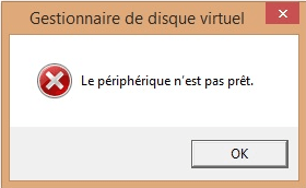 ▶ Gestionnaire de disque virtuel : Le périphérique n'est pas prêt.