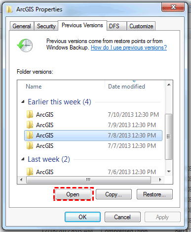 Étape 2. Sélectionnez la version du dossier et cliquez sur Ouvrir, vous pouvez parcourir les fichiers supprimés à restaurer.