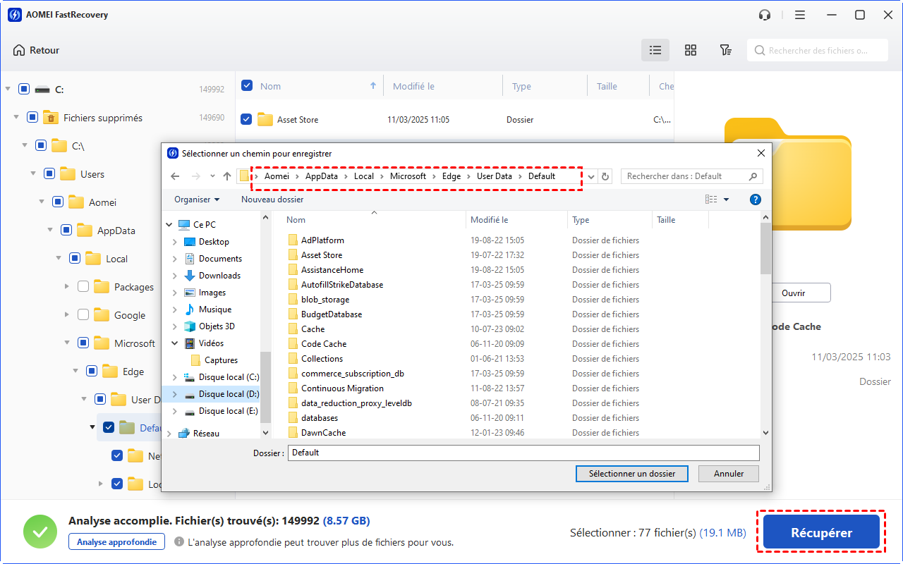 Méthode 1 : Utiliser un logiciel de récupération AOMEI FastRecovery